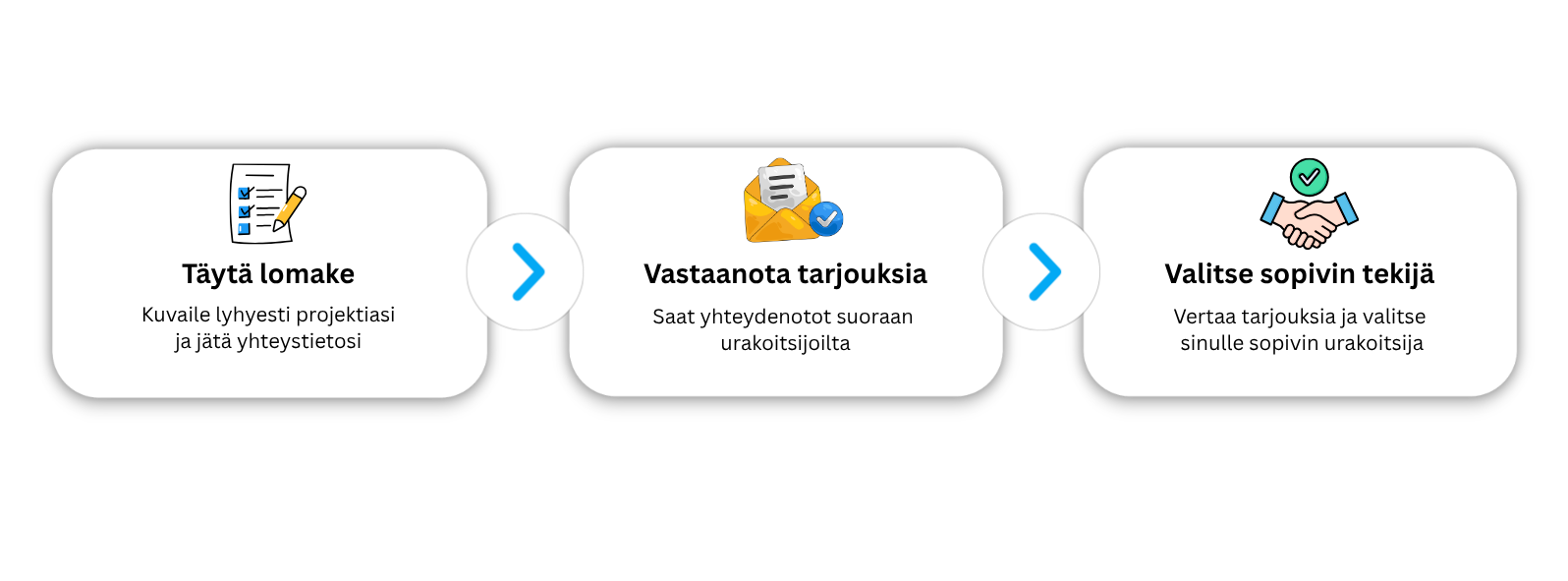Jätät yhden tarjouspyynnön, ja sopivat urakoitsijat ottavat sinuun yhteyttä.